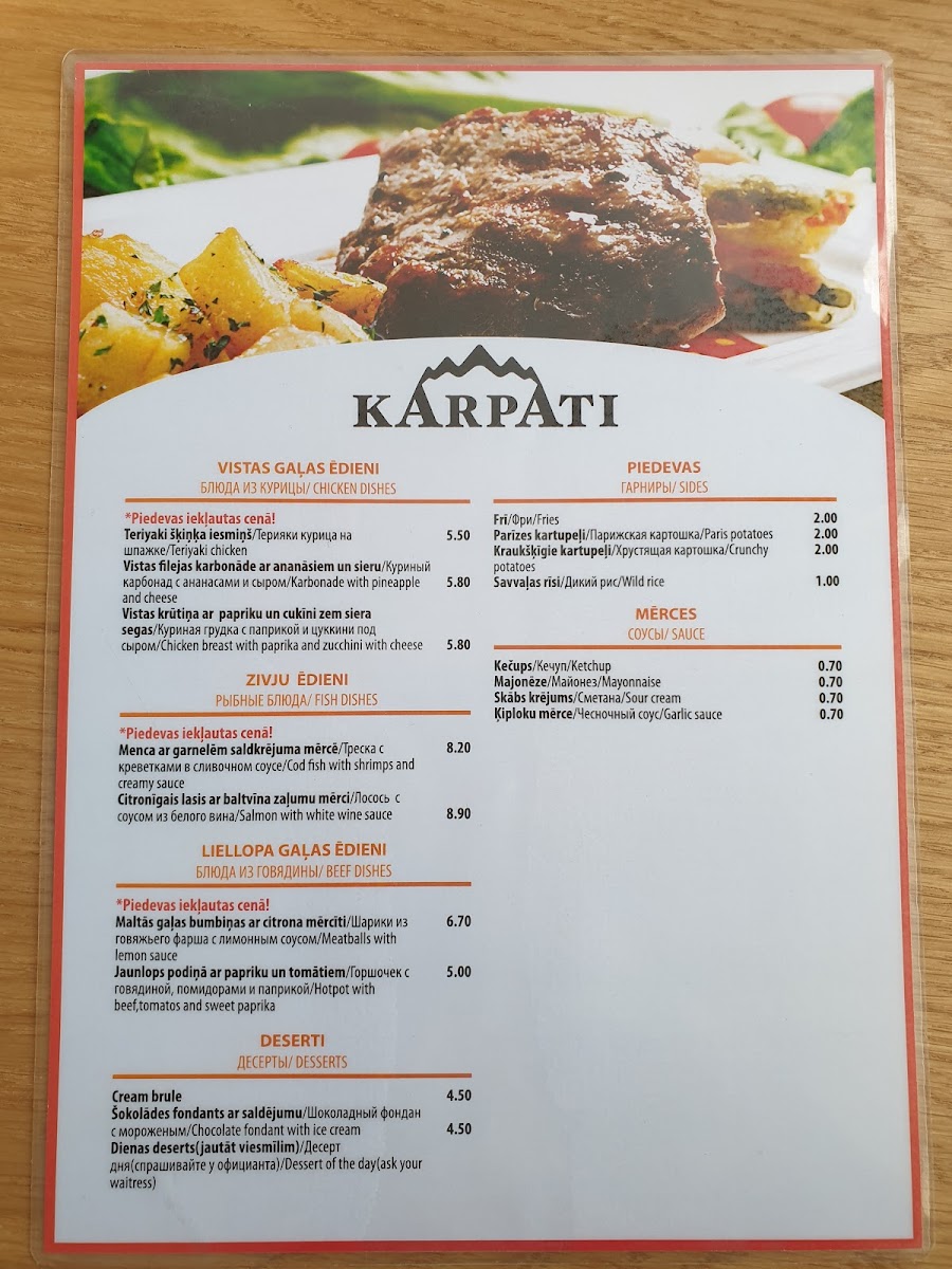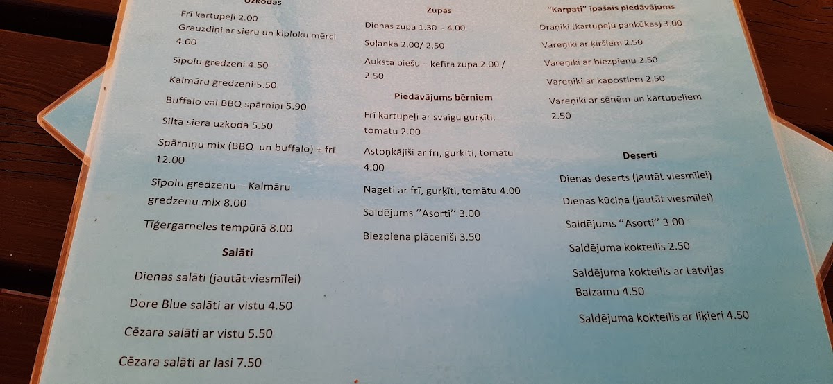 Located on Talsu iela 33 in Ventspils, Karpati offers a warm and inviting atmosphere for diners. With a unique blend of affordability and comfort, it’s a family-friendly spot featuring beautifully designed tables and a small children’s corner stocked with books, ensuring everyone is entertained as they wait for their meals.